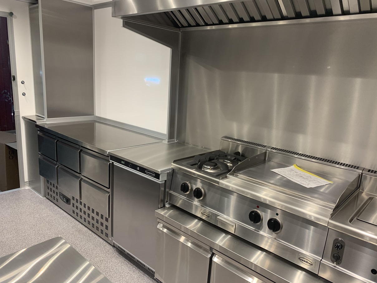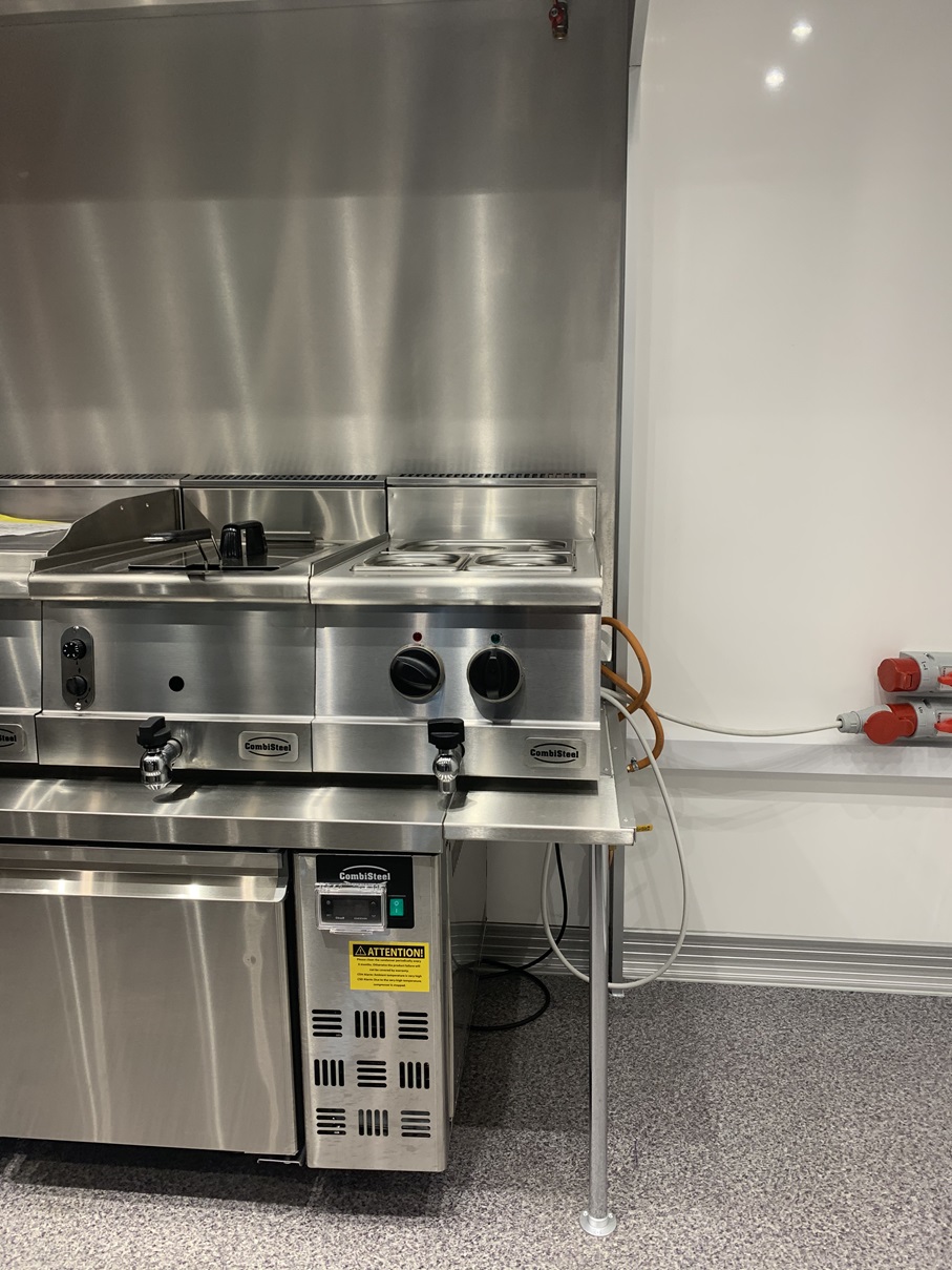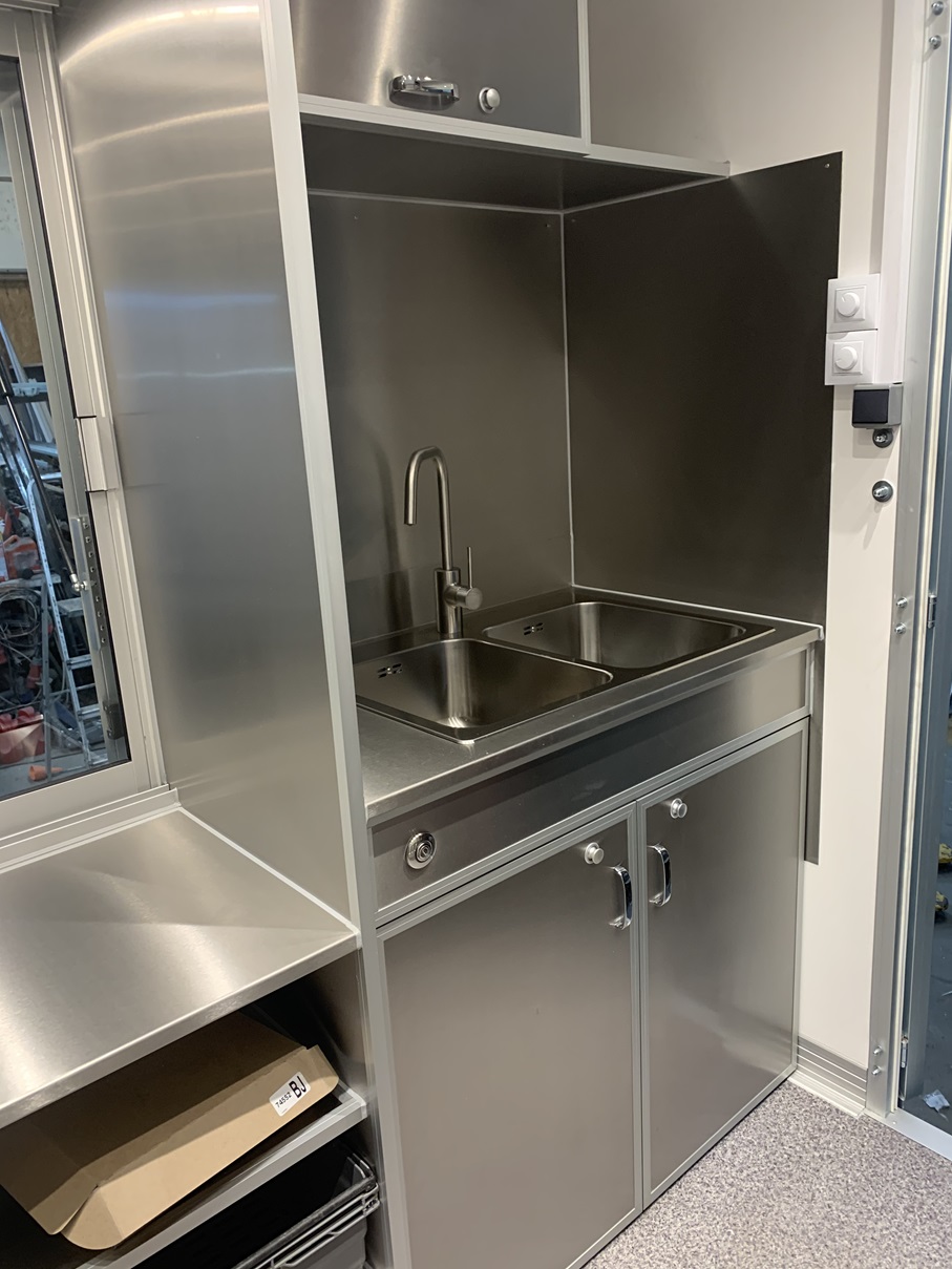 .UNDERFLÄKT- VÄGGARNA AV ROSTFRITT-PLÅT .BÄNK 2400MM- AV ROSTFRIT (UNDER HYLLA) .